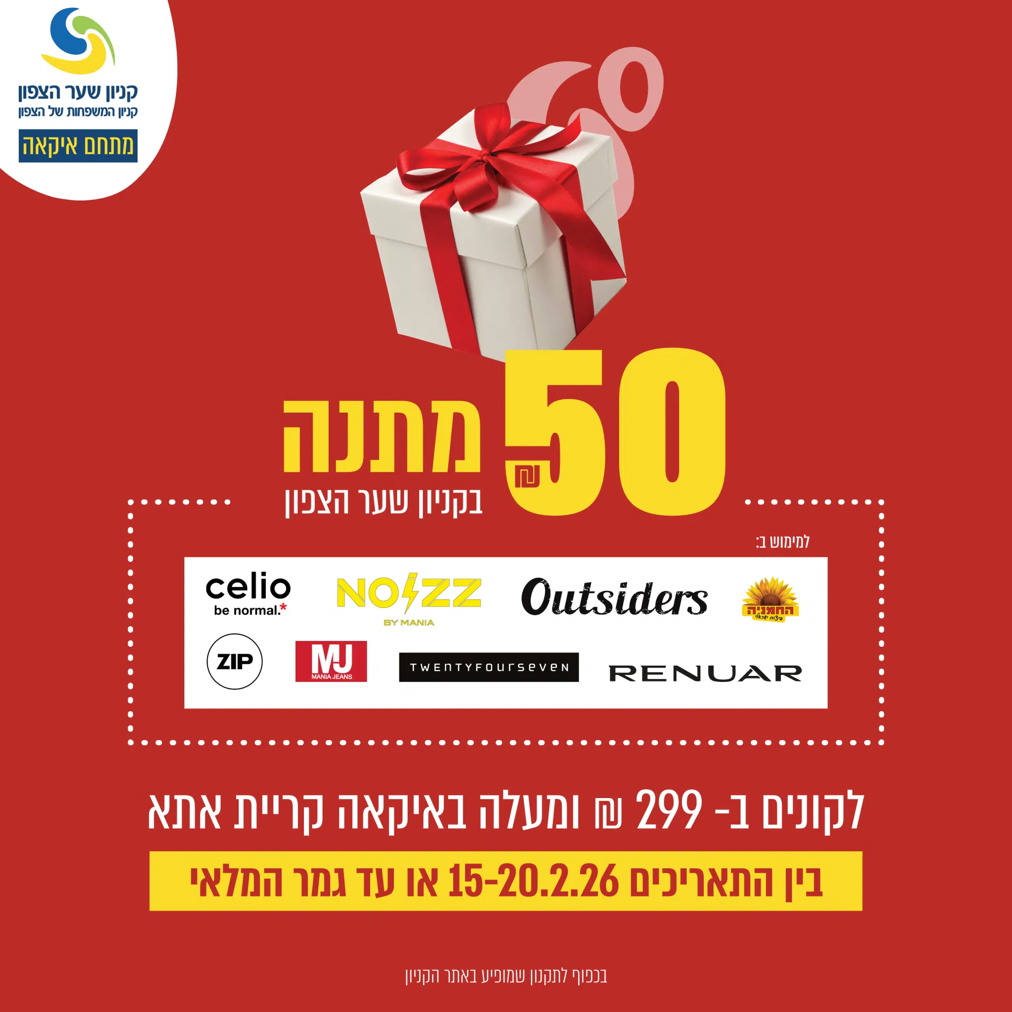 מבצע קנה קבל – ₪50 מתנה בקניון שער הצפון!
